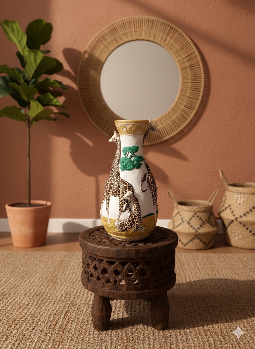 Dekoratif Afrika Temalı Vazo – Zürafa Figürlü